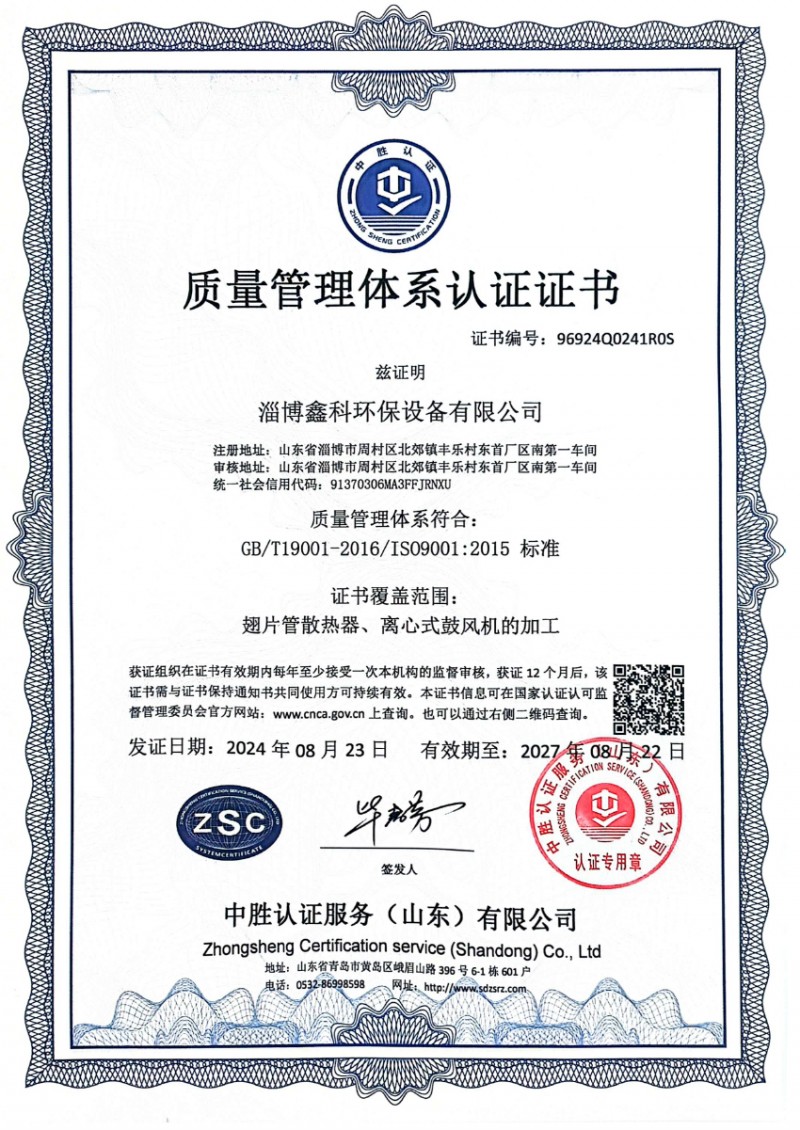 質量管理體系認證證書