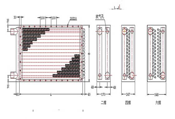 注:1:表中示散熱面積均為二排結構面積,其余四排,六排結構之散熱面積分別為×2,×3既得;